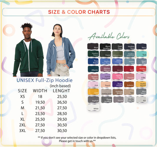 Embroidered - Custom Logo Bella Canvas Brand Full-Zip Hooded Sweatshirt for all family members - Personalized Gift