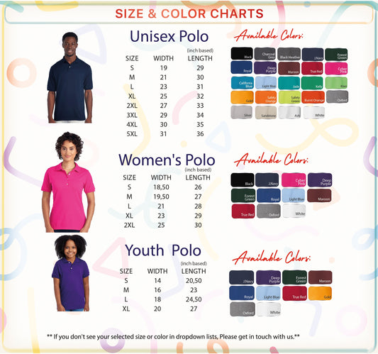 Embroidered - Custom Logo Jerzees Brand Polo Shirts for all family members - Personalized Gift