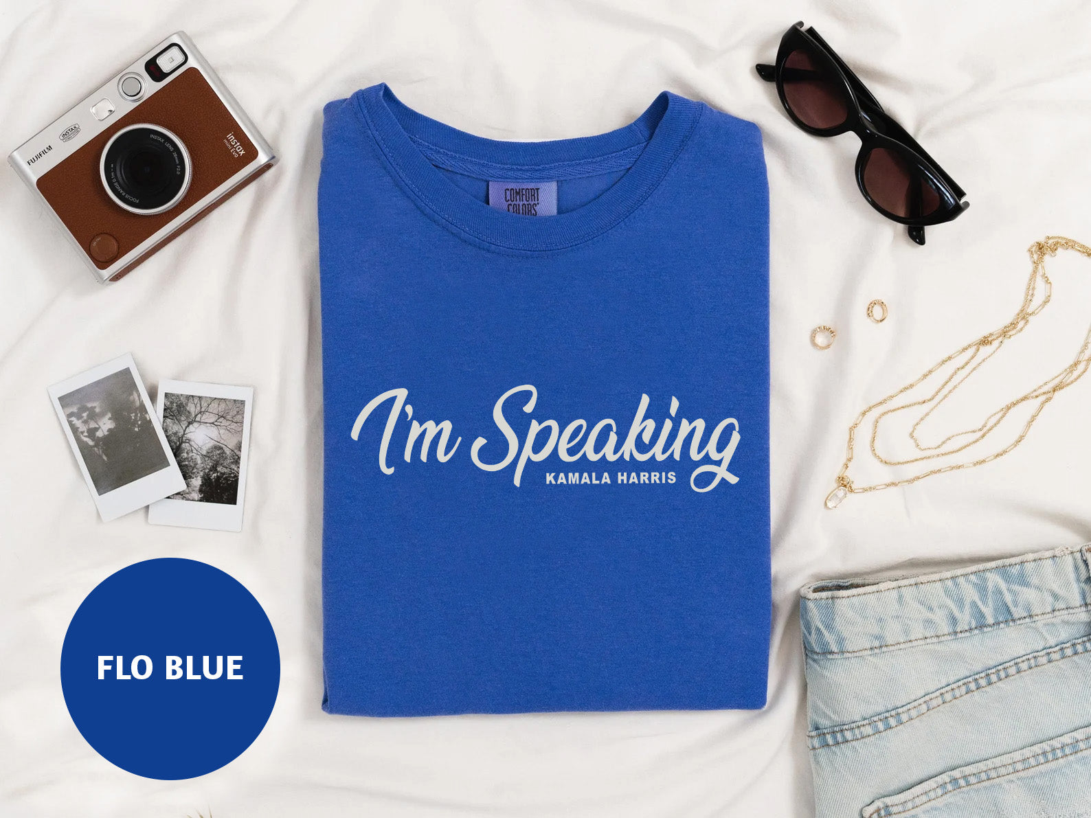 Capture the essence of advocacy with our Comfort Colors Unisex T-Shirt featuring "I'm Speaking," inspired by Kamala Harris.