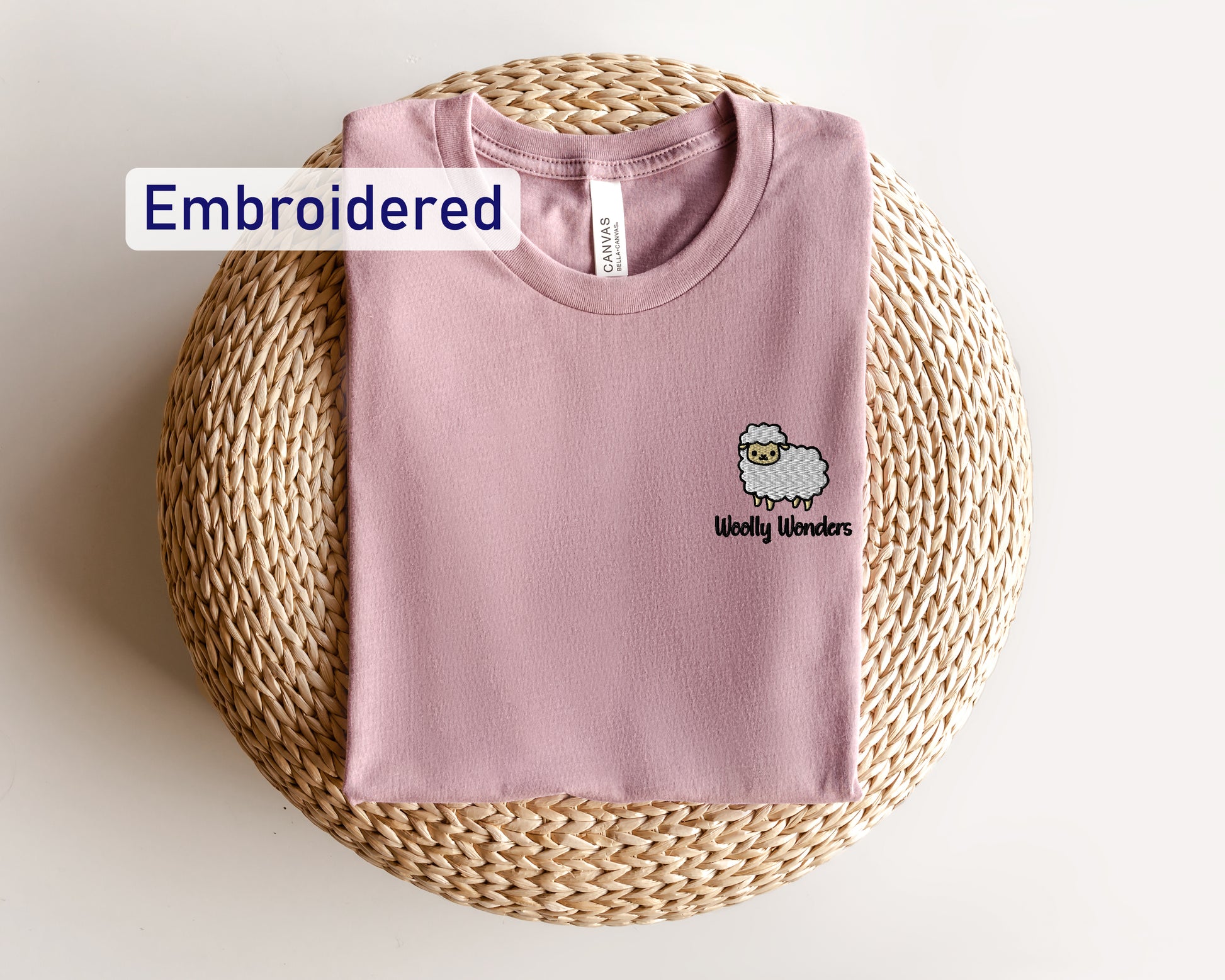 Show off your love for sheep with our Woolly Wonders Embroidered T-Shirt, featuring an adorable sheep design.